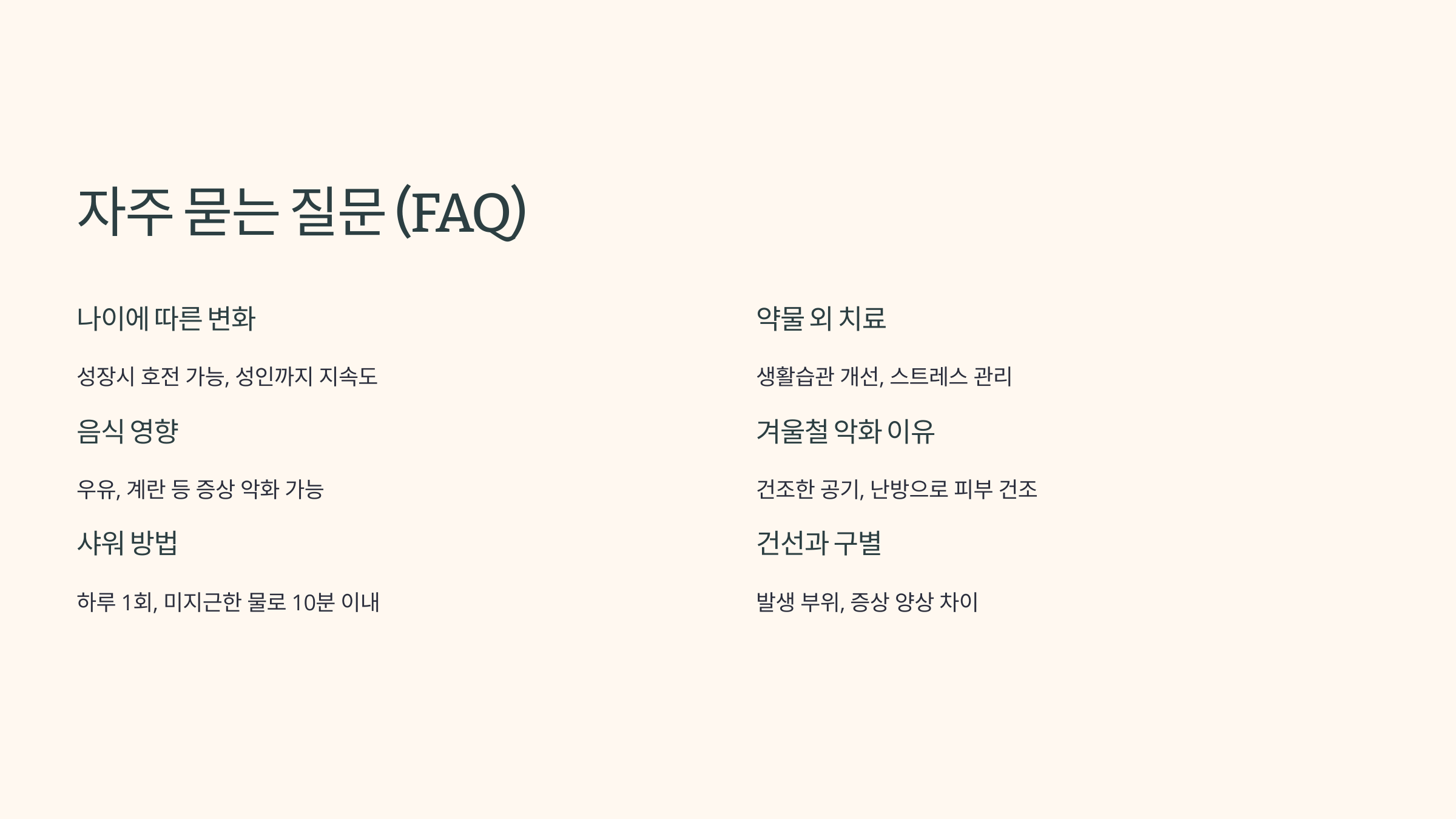 - 샤워 습관 개선: 너무 뜨거운 물 피하고, 짧은 시간 동안 샤워하기